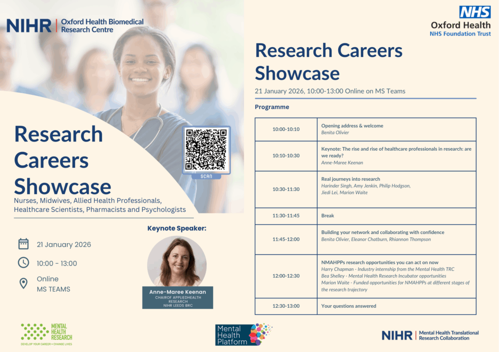 We are excited to share this upcoming event with you, in partnership with the NIHR Oxford Health Biomedical Research Centre, Oxford Health NHS Foundation Trust, NIHR Mental Health Translational Research Collaboration and the Mental Health Platform.